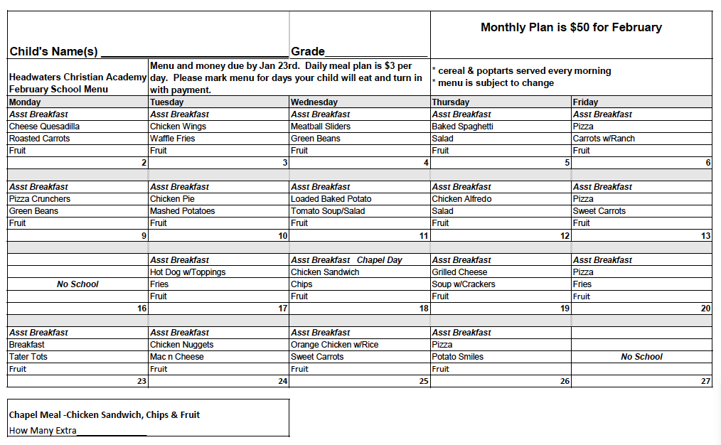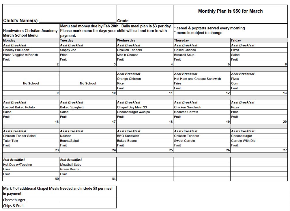 March 2026 Printable Menu February 2026 Printable Menu January 2026 Printable Menu December 2025 Printable Menu November 2025 Printable Menu October 2025 Printable Menu September 2025 Printable Menu August 2025 Printable Menu